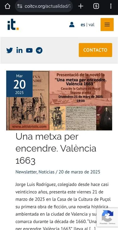 La primera presentació pública de la novel·la. A la Casa de la Cultura de Puçol el divendres 21 de març de 2025 a les 19:00. Ben acompanyat d'amics, familiars i interessats en la literatura.